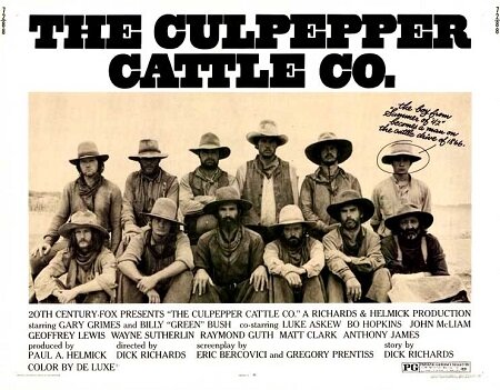 Il grande ritorno che i veri appassionati del western si aspettavano era senz’altro quello della figura più caratteristica dell’intera storia del West: il cowboy, buckaroo nella versione gergale derivata dallo spagnolo vaquero. Nel 1972 escono due film celebrativi del personaggio, entrambi drammatici e avvincenti: “Fango, sudore e polvere da sparo” (“The Culpepper Cattle Company” nell’originale) diretto dal bravissimo Dick Richards, con la sceneggiatura di Eric Bercovici e Gregory Prentiss, la fotografia di Ralph Woolsey e Lawrence Williams e le musiche di Tom Scott e Jerry Goldsmith.