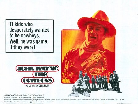 Una sorte più o meno identica ha il film di Mark Rydell “The Cowboys”, che tuttavia può accampare meno pretese del primo. Il suo punto di forza è soprattutto, in un cast di attori e caratteristi sterminato, la presenza di John Wayne, non ancora giunto al definitivo declino e ringalluzzito dall’Oscar alla carriera conseguito tre anni prima. Narra di un attempato ranchero (Will Andersen) che, trovatosi senza mandriani, deve rivolgersi ad una scuola per ingaggiare degli adolescenti ai quali spera di insegnare in fretta il mestiere per condurre il bestiame a Belle Fourche, nel South Dakota.