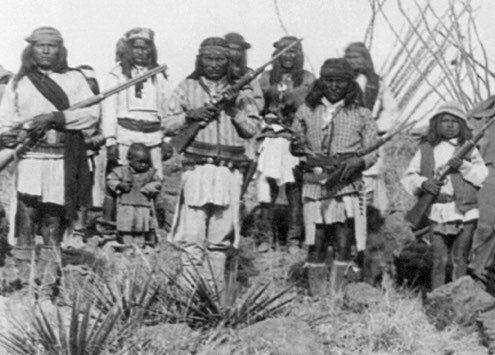 Gli Apache erano reduci da decenni di scontri sanguinosi contro Spagnoli e Messicani. La situazione venutasi a creare con la venuta dei nuovi possessori di quei territori, con sempre nuovi insediamenti, difesi da truppe armate che si muovevano avanti e indietro, la comparsa di gruppi di cercatori d’oro, non potevano non far pensare agli Apache che la loro situazione non sarebbe certo migliorata con i nuovi venuti. Da qui l’origine di questi conflitti, la cui fase finale si prolungò fino al 1906, dal momento che anche dopo il 1886 piccole bande Apache continuarono i loro attacchi contro gli insediamenti colonici e combatterono le forze di spedizione della cavalleria americana e le milizie locali. I combattenti erano per lo più gruppi di guerrieri, con al seguito piccoli nuclei di non combattenti. L’esercito condusse missioni di ricerca e distruzione contro le piccole bande, usando tattiche che comprendevano segnali fatti riflettendo i raggi del sole, il telegrafo, condivisione di informazioni con i servizi Messicani, arruolamento di scouts Indiani alleati, e gruppi di combattenti degli insediamenti locali. Ciò nonostante, solo nel 1906 gli ultimi gruppi di Apache, che avevano eluso il controllo al confine della riserva tribale da parte dell’esercito, furono ricondotti nella riserva.
