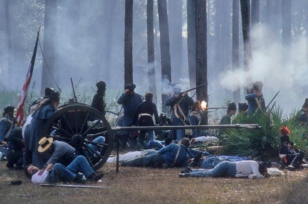 Stavano attraversando una zona ricca di querce, pini, palme e palme nane quando riecheggiò uno sparo. Molte fonti sostengono che la prima raffica di spari ebbe l’effetto di una tempesta di fuoco e abbattè il Maggiore Dade e metà dei suoi uomini.