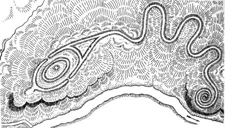 Il riferimento è ai Mounds, costruzioni precolombiane che risalgono fino al 3500 a. C. e sono soprattutto presenti nella valle del Mississippi. Si tratta di terrapieni, probabilmente con fini sepolcrali e cerimoniali, che potevano avere svariate forme: piramidi tronche, piattaforme, coni tronchi o arrotondati o, come nel caso del famoso Serpent Mound in Ohio, forme complesse e zoomorfe. All’interno di questi tumuli di terra, si trovano in genere ossa umane e suppellettili, quali armi o gioielli, che indicano la loro funzione funeraria e, presumibilmente, cultuale.