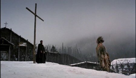 Nel 1991 l’australiano Bruce Beresford dirige “Manto Nero” (titolo del libro originale “Black Robe”, in Italia “Fuochi morenti”) dal romanzo del nordirlandese Brian Moore (1921-1999) ambientato nelle foreste canadesi. L’epoca è il 1634, il protagonista principale è padre Laforgue (Lotaire Bluteau) un missionario gesuita con il compito di cristianizzare gli Indiani, inviato da Samuel de Champlain (Jean Brousseau) alla ricerca di una missione cattolica nel paese degli Uroni. L’impresa si rivela ardua, a causa della diffidenza di alcune tribù come i Montagnais e dell’ostilità di altre soprattutto irochesi. Infatti i Mohawk attaccano la spedizione, uccidendo una donna e catturando vari prigionieri. Al pericolo di scontri armati, si aggiunge per Leforgue il cruccio creato dalle intemperanze del giovane ed esuberante Daniel (Aden Young) assistente e futuro “Manto Nero” – così venivano chiamati i preti cattolici dai selvaggi – attratto dalle grazie delle lascive ragazze pellirosse.