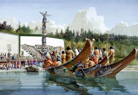 Un bel quadro che ritrae partecipanti ad un Potlatch
