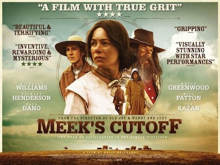 A riprova di ciò, i più recenti esperimenti di ridare fiato al western classico hanno dimostrato un diffuso disinteresse delle platee, come è avvenuto per ”Meek’s Cutoff”, un film che racconta le peripezie di una piccola carovana in marcia verso il West, diretto dalla brava Kelly Reichardt nel 2011, sceneggiato dallo scrittore Jonathan Raymond, con la fotografia di Chris Blauvelt e l’impalpabile colonna sonora di Jeff Grace. Per gli amanti del genere più vicino alle origini, un ottimo lavoro recitato quasi in sordina – interpreti Michelle Williams, Bruce Greenwood e Rod Rondeaux – che mette in risalto le qualità umane di un indiano Cayuse (Rondeaux) nel soccorrere la spedizione smarritasi per avere seguito la “scorciatoia” suggerita da Stephen Meek (Greenwood) evidente allusione al destino storico della carovana Donner. Il personaggio chiave della storia è però una donna, Emily Tetherow (Williams) che diventa la principale interlocutrice del Pellerossa, inducendolo a condurre gli emigranti verso la salvezza.