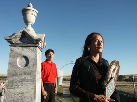 In un paesaggio lunare al centro geografico e storico del paese, accanto ai silos dei missili nucleari, a pochi chilometri da dove volano i bombardieri, finisce l’America dell’ uomo bianco e comincia l’America delle ombre rosse. Niente più di un cartello di legno e di un saloon dilapidato che dal 1906 proibisce l’ingresso agli indiani annunciano che stiamo abbandonando la dimensione della tecnologia, del Duemila, e dei cow-boys per entrare nel mistero tragico e bellissimo di una riserva.