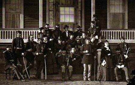 Custer, i suoi ufficiali e le loro mogli a Fort Lincoln, Territorio del Dakota