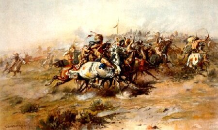 L’accampamento fu attaccato il 25 giugno 1876 dal VII Cavalleria (come aveva previsto Toro Seduto nella sua visione) guidato dal Generale Custer che condusse le sue truppe contro un nemico superiore di numero.