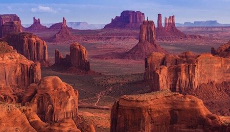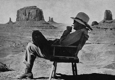 Inevitabile chiedere di essere immortalati sotto torrioni, tante volte ricordati nei films di John Ford, come Ombre Rosse o, il più recente, Sentieri Selvaggi: per qualche breve momento ci siamo sentiti improvvisati pionieri, calati in quella dimensione straordinaria, in una immaginaria rappresentazione dove, come tutto il paesaggio circostante, appare esattamente definita la divisione tra l’azzurro del cielo ed il rosso della terra, tra il bene, riferito all’eroe, ed il male rappresentato dal cattivo.