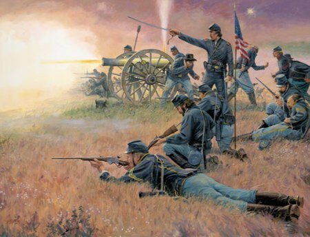 Più ci si approssimava all’altura difesa da Jackson, più si facevano fitte le schiere degli skirmishers sudisti che bersagliavano i loro corrispondenti nordisti da ogni albero e cespuglio; Sigel vedendo la sua avanguardia in difficoltà ordinò a 2 pezzi di artiglieria e 2 compagnie del III° reggimento di assitere l’avanzata degli skirmishers in blu.
