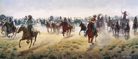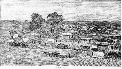 Fili di fumo iniziarono ad alzarsi nel cielo blu allo spuntare degli accampamenti dei rushers attraverso la prateria. A Big Turkey Creek, prateria vergine e feconda, quel mattino rigogliosa d’erba alta dai sei agli otto pollici, per la notte i carri ricoprirono il terreno di solchi profondi un piede.