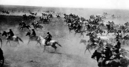 Appena le lancette dell’orologio dell’ufficiale segnarono mezzogiorno, egli dette il segnale ai suoi trombettieri, e le chiare note di “il rancio è pronto”, echeggiarono nella verde prateria. La corsa era iniziata.