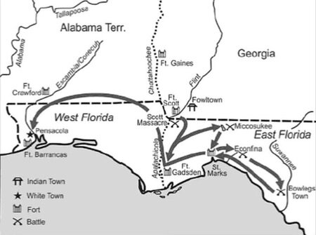 Il 12 marzo 1818 Jackson e le sue truppe varcarono il confine della Georgia dando ufficialmente inizio all’invasione americana della Florida spagnola.