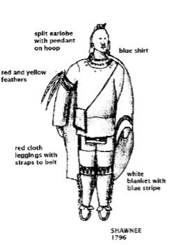 Il tipico abbigliamento di un guerriero Shawnee intorno al 1800 in una vignetta commentata