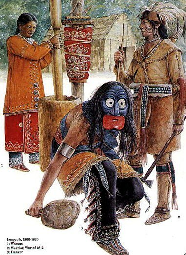 Il clima freddo del Nord Est e dei Grandi Laghi tendeva a limitare l’orticoltura e a costringere alla raccolta delle piante selvatiche; i cibi più importanti erano il pesce, gli animali da caccia, lo sciroppo d’acero e il riso selvatico. Fra i coltivatori gli uomini si limitavano in genere a preparare il terreno per la coltivazione, che era opera essenzialmente femminile. I popoli di lingua irochese erano organizzati in villaggi matrilineari guidati da un consiglio: le donne avevano un ruolo importante nel governo dei villaggi.