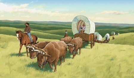 L’anno 1835 fu quello che vide l’avvio della grande migrazione verso ovest, verso il west americano che sarebbe diventato leggenda in pochi decenni. Erano tempi in cui solo i più coraggiosi e avventurosi tra i pionieri potevano trovare le forze ed il coragigo per affrontare un viaggio terribile e rischioso come quello verso la frontiera seduti a cassetta di un carro di legno dotato di una copertura leggera. Era il carro dei pionieri, la “goletta delle praterie”, un derivato semplificato del famosissimo (e pesantissimo) carro “Conestoga” prodotto in Pennsylvania.