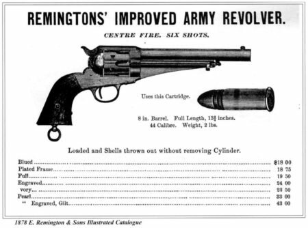 Catalogo del 1878 della Eliphalet Remington & Sons della modello 1875 nel calibro proprietario 44 CF, inferiore come prestazioni al 45 Colt e 44 – 40