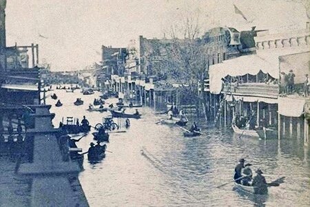 Intere foreste furono abbattute, la base militare di Fort Ter-Waw fu spazzata via, le città minerarie furono completamente sommerse, i ponti sui fiumi furono distrutti, Sacramento andò completamente sott’acqua, sepolta dall’omonimo fiume e dall’American River. Leland Stanford, il neoeletto governatore, remò con una barca per le strade fino al Municipio, dove fu ufficialmente proclamato.