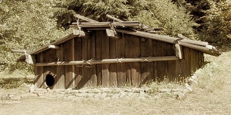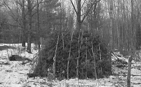 Lean-To: era un rifugio aperto e temporaneo, costituito da un semplice doppio tetto inclinato posato direttamente sul terreno. Era normalmente coperto di arbusti.