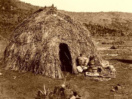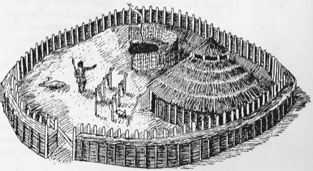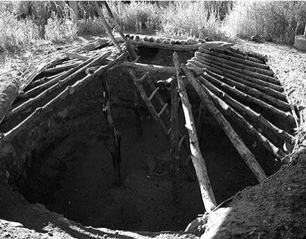 Pit House: si trattava quasi di un seminterrato, nel senso che era costruita perlopiù a diversi centimetri sotto il livello del suolo con una semplice struttura di pali intrecciati a rametti e ricoperta di paglia, erba e fango.