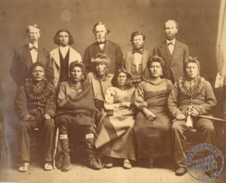 Delegazione Pawnee. A destra, seduto, Sky Chief (Capo Cielo)