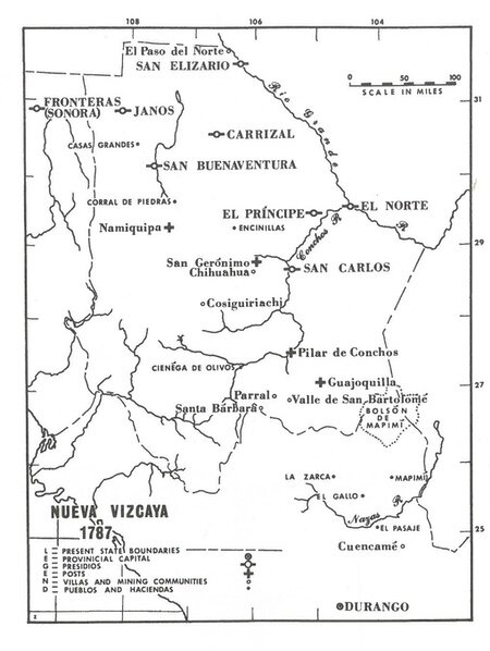 Nel frattempo le “Provincias Internas del Norte” venivano separate sotto due comandanti e furono nuovamente sotto attacco, specialmente nella Nueva Vizcaya dove da tempo operavano le bande note come “Gileños”. Fu allora che l’Ugarte si spostò ad Arispe, nel Chihuahua, per meglio difendere il territorio. L’Ugalde aveva riferito (22 ottobre) di aver ammesso alla pace a determinate condizioni otto capi e altri 140 Mescaleros, sia adulti che bambini, ora riuniti nelle vicinanze del Río de Sabinas, e il viceré Flores aveva approvato gli articoli inerenti alla loro capitolazione. Ora, il 21 novembre, voleva che l’Ugarte esigesse dai Mescaleros, risiedenti vicino al Presidio di El Norte, di “accettare gli stessi termini sotto pena di pieno processo militare”.