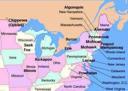 Dislocazione dei Fox fra le tribù del Nord Est nel loro territorio classico