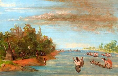Indiani Sauk e Fox su canoe – dipinto di George Catlin