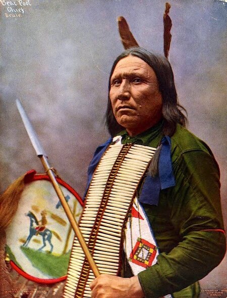 Il capo Brulé Bear Foot in una foto del 1899 colorata successivamente