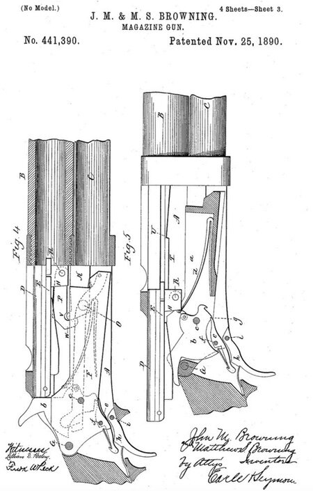 Il sistema di chiusura del Winchester Mod. 1893 e dell’identico Mod. 1897 sono simili al surrichiamato Spencer Roper del 1882 e pertanto Francis Bannerman, che ne aveva rilevato i diritti, nell’ottobre del 1894 intentò un azione legale per violazione di brevetto contro J.M. Browning ma nel giugno 1896 la corte rigettò l’istanza.