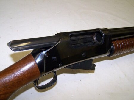 E’ bene comunque precisare che un sistema “Pump Action” ma su carabine a canna rigata era dal 1884 in commercio con il Colt Lightining Rifle ideato dal prolifico inventore Andrew Burgess. Il nome “lightining” derivava dalla fulminea cadenza di fuoco manovrando la slitta col grilletto tirato. Per inciso Colt “Lightining” è anche il nome commerciale ma non ufficiale del revolver a doppia azione Mod. 1877 in calibro 38.