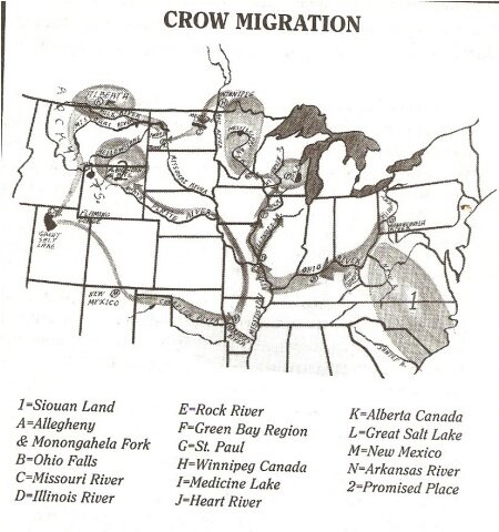 L’antropologo e storico tribale Apsáalooke Joseph Medicine Crow ha tentato di ricostruire la storia della migrazione dei proto-Hidatsa/Apsáalooke dall’area dei Grandi Laghi fino al North Dakota e successivamente quella delle peregrinazioni degli Apsáalooke, ormai una popolazione distinta, fino all’arrivo nella loro terra promessa, l’area compresa tra il Montana meridionale e il Wyoming settentrionale, un lavoro definito dallo stesso Medicine Crow come “interessante, stimolante e allo stesso tempo frustrante” ma anche come “la più grande e drammatica migrazione indiana mai raccontata”. (3)