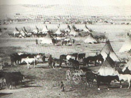 I carri attraversano il campo Sioux