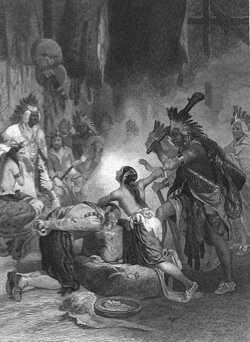 L’insediamento di “Mecuppom” sembra riconducibile ad un altro villaggio Powhatan ricordato dallo Swanton come “Manacupunt”, e posto sul Pamunkey River (King William County). Ma gli indiani ostili non demordevano, e nonostante i continui attacchi lo Smith continuava a risalire il fiume, avvistando diversi insediamenti dove “I re di Pisasack, Nandtaughtacund e Cuttatawomen ci trattarono con estrema cortesia”. Il villaggio di “Cuttatawomen” apparteneva all’omonima tribù del gruppo Powhatan, stanziata nell’attuale King George County; lo Swanton però ci presenta ben due insediamenti con lo stesso nome, uno sul Rappahannock River e in vicinanza del fiume Corotoman, nella contea Lancaster, e l’altro nelle vicinanze del Lamb Creek, un affluente del Rappahannock, nella contea King George. Il villaggio di “Nandtaughtacund” è riconducibile alla tribù Nantaughtacund della Confederazione Powhatan, stanziata nelle contee Essex e Caroline, mentre l’insediamento, noto allo Swanton come “Nantaughtacund” era posto sulla riva meridionale del Rappahannock, ma lo stesso Swanton non si sbilancia nel localizzarlo nella contea Essex o nella Caroline. L’insediamento di “Secobeck” apparteneva alla Confederazione Powhatan ed era sito sulla riva meridionale del Rappahannock, nella Caroline County; mentre “Massawteck”, meglio noto come “Massawoteck”, apparteneva anche esso ai Powhatan ed era posto sulla riva settentrionale del Rappahannock (King George County). Il giorno dopo si ebbe un nuovo attacco, ma dopo un breve scontro gli inglesi catturarono un indiano di Hassininga, il cui capo era alleato con “i re di Stegora, di Tauxuntania e di Shakahonea”, il quale riferì che si trovavano a Mohaskahod, un villaggio di caccia che fungeva da confine fra il regno dei Mannahock e quello dei Nandtaughtacund.