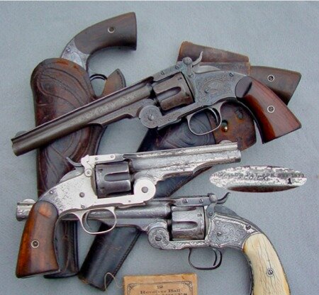 Nel 1857 la Smith & Wesson brevettò la prima arma atta a sparare cartucce metalliche. La cartuccia metallica conteneva già la capsula esplosiva, e veniva caricata dalla parte posteriore del tamburo. Si era aperta una nuova era, in cui ci troviamo ancora oggi. I revolvers a retrocarica più famosi e conosciuti della frontiera sono lo Smith & Wesson Schofield e la Colt Peacemaker (pacificatrice).