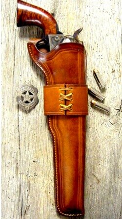 I cowboy preferivano la fondina ad estrazione rapida, ma la dotavano di un occhiello che trattenesse il cane e impedisse all’arma di cadere durante le cavalcate. La fondina era inoltre munita di un legaccio di cuoio, posto sulla sua parte inferiore, che la assicurava alla coscia, per impedire che la pistola sollevasse, tirando dietro di sé, durante l’estrazione, la fondina .