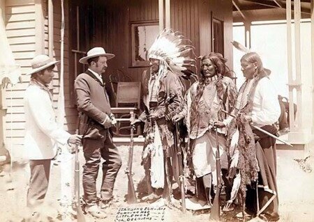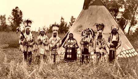 La nazione Sioux delle pianure centrali era in origine divisa in tre parti: Dakota (Santee), Nakota (Yankton) e Lakota (Teton). I Teton attraversarono il Missouri e divennero Sioux occidentali, costituiti da sette tribù: Brulé, Hunkpapa, Miniconjou, Oglala, Oohenonpah/Two Kettle, Sans Arc e Sihasapa/Blacfoot. Cacciatori nomadi, seguivano le mandrie di bisonti che soddisfacevano la maggior parte dei loro fabbisogni di base. Vivevano in tende (tipi) formate da una semplice struttura conica di pali di pino e pelle di bisonte.