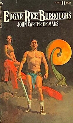 Uno di questi fu il trentasettenne Edgar Rice Burroughs di Chicago, che tutti conoscono come il creatore di Tarzan. Nel 1912 uscì a puntate, sul periodico americano “All Story Weekly” il romanzo “Under the Moons of Mars” (“Sotto le lune di Marte”) firmato da un certo Normal Bean. Quest’uomo aveva svolto vari mestieri, dalla guardia ferroviaria al libraio, ma si era pure cimentato nel duro lavoro del cow-boy, rimanendone affascinato. Per questo la sua opera, al di là dei suoi contenuti fantascientifici, inizia addirittura nel West, dove John Carter, cercatore d’oro, viene assediato da una banda di Apache in una caverna. Cercando una problematica via di scampo, il protagonista scopre un cunicolo buio e lo segue, finchè, dopo avere sentito alle proprie spalle un sibilo strano, viene a trovarsi, completamente smarrito e senz’abiti, sul fondo prosciugato di una mare marziano, dove viene fatto prigioniero da strani esseri verdi con quattro braccia!