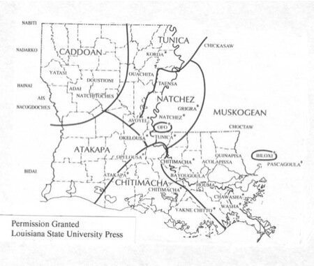 Una mappa in cui si vede il territorio degli Atakapa
