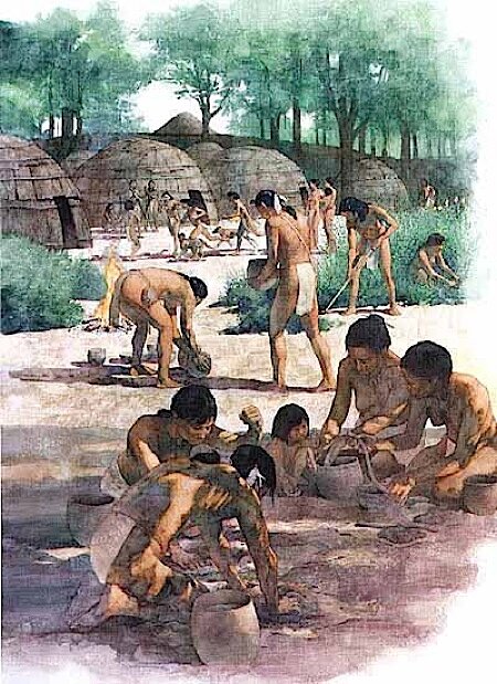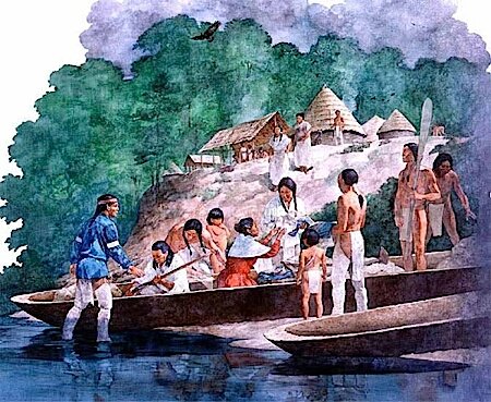 L’Hudson ritiene impossibile localizzare gli insediamenti di questi due capi, ma sospettava che erano sull’alto corso del fiume Yadkin, in una posizione geografica più vicina a Joara che a Guatari, ma non possiamo escludere che invece i due centri fossero sull’alto corso del fiume Dan, il che avrebbe potuto implicare un cambiamento di alleanza. Un altro dato importante era il fatto che Joara era non solo rivale, ma anche nemica di Chiscas, un villaggio posto al di là delle montagne, sull’alto corso del fiume Nolichucky, ma le cui terre si estendevano fino al fiume Holston. Dalle fonti del Bandera sembra che, nell’aprile 1567, partendo da Joara, gli spagnoli e gli indiani della zona lanciarono una spedizione punitiva contro i nativi di Chiscas. Questo ultimo termine era indiscutibilmente un nome della lingua Muskhogean, ma spesso usato anche in altre lingue native; genericamente il termine era affibbiato a tutti gli indiani che vivevano sulle montagne e sulle colline dell’alta valle del Tennessee. Già il de Soto ebbe modo di sentire dagli indiani di Chiaha il nome “Chiscas”, poi il termine venne usato dal sergente Moyano, il quale guidò la spedizione sopra citata contro di loro. Stando ai dati archeologici in nostro possesso gli indiani Chiscas erano portatori della “Pisgah Culture”, ed un sito da loro occupato era quasi sicuramente quello di Plum Grove, nella Washington County del Tennessee. Le ceramiche di questo sito appartengono alla tarda “Pisgah Culture”, anche se piccole quantità di altre ceramiche erano presenti. Questi indiani seguirono anche il corso della “Qualla Culture” e le loro ceramiche sembrano essere simili a quelle ritrovate sull’alto corso del fiume Catawba. Simili resti archeologici sono stati trovati sul fiume Nolichucky, nelle vicinanze dell’odierna Chucky, ma anche presso la giunzione del fiume con il French Broad. E’ chiaro che gli indiani Chiscas erano dediti al commercio del rame, sia con Chiaha che con Joara; quando il de Soto raggiunse Chiaha venne a conoscenza dell’esistenza di miniere di rame nelle terre dei Chiscas, ma i suoi cronisti parlavano anche dell’esistenza di “altri metalli dello stesso colore”, infatti il Governatore inviò due dei suoi uomini ad investigare. Teresa Martin e Luisa Méndez ricordavano che gli indiani Chiscas scendevano dalle montagne per commerciare “oro”, ed entrambe dichiaravano, erroneamente, che i Chiscas erano di “pelle chiara, occhi azzurri e capelli rossi”. Ma questo problema non è stato ancora risolto, erano veritiere queste ultime informazioni?
