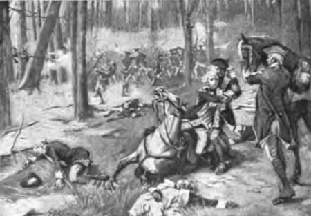 Per St. Clair l’agonia di quel giorno era già un incubo. Incapace di muoversi senza dolore, il Generale era così menomato dalla gotta, che era rimasto a letto, svestito, quando la sparatoria era iniziata. Con indosso solo un ruvido cappottone e il tricorno, cercò di montare il primo dei suoi 4 cavalli. L’animale era spaventato dagli spari, e così, nonostante l’aiuto di 4 uomini, St. Clair non riuscì a issarsi in sella. Poi, improvvisamente, il cavallo fu colpito alla testa e stramazzò. Fu portato un secondo destriero e preparato per ricevere il suo cavaliere. Ma prima che il Generale riuscisse a montare, il cavallo e un soldato che teneva le redini furono colpiti e uccisi. Dicendo che non poteva più aspettare, St. Clair, finalmente, raggiunse a piedi la linea del fuoco.