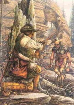 Robert Bradshaw, un ranger della milizia, era in piedi accanto al fuoco e stava parlando con un compagno, quando vide apparire una dozzina di Indiani che si muovevano, furtivamente, tra gli alberi. Pensando che fosse un war party intento a sorprendere e catturare il posto di sentinella avanzato, imbracciò il fucile e sparò. Il fumo del moschetto non si era ancora diradato, disse Bradshaw, quando una terrificante sparatoria e un terribile urlo si alzarono dal sottobosco. Dagli alberi circostanti, una moltitudine di selvaggi dipinti si riversò verso l’avamposto dei rangers e il campo della milizia. Bradshaw si voltò per fuggire, e inciampò sul corpo dell’uomo con cui stava conversando qualche istante prima. Con un brivido, vide che era stato colpito alla tempia.