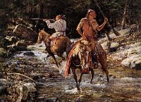 “Verso il West” è il titolo che abbiamo inteso dare a questa bella galleria di immagini dedicata al periodo coloniale. D’altra parte, dopo aver ospitato saggi strepitosi dedicati allo stesso periodo storico ed alle prime guerre indiane, ci è sembrato quanto mai opportuno stuzzicare la fantasia degli appassionati con una galleria di immagini effettivamente molto stimolanti. L’autore dei quadri è Robert Griffing, un pittore ormai famosissimo per l’amore che ha sempre riversato sulla vita della prima frontiera. Griffing è nato nel 1940 a Linesville in Pennsylvania e dopo aver concluso i suoi studi si è dedicato per lunghissimi anni al mondo della pubblicità.