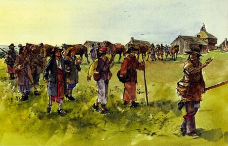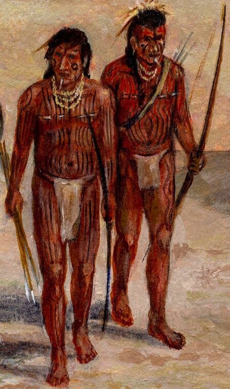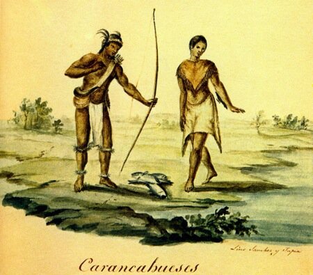 Abilissimi nuotatori, questi indiani si spinsero anche in mare aperto per assalire le navi del Lasalle (gennaio 1685), anche se non possiamo escludere che questo primo attacco fosse invece opera dei Cocos. Il Joutel faceva dei commenti significativi sulle tribù indiane da lui incontrate, specialmente quando si mosse lungo il basso corso del fiume Navidad per poi spingersi a nord e a nord-est dell’alto corso del fiume, per poi attraversare il fiume Colorado e spingersi in altre sconosciute terre. Anche se padre Douay riportava i nomi di parecchi gruppi del basso Navidad, il Joutel identificava soltanto gli Ebahamo, stanziati nella parte settentrionale dell’attuale Lavaca County, affermando che erano amici dei Cenis e che alcuni di loro parlavano la lingua Caddoan. Stando al Joutel gli Ebahamo conoscevano gli spagnoli e spesso si spingevano a ovest per commerciare con loro; gli stessi Ebahamo ricordavano al francese che a occidente vi erano quattro grandi fiumi nelle cui terre vi erano numerosi bisonti. Il Joutel, purtroppo, non ricorda alcun nome delle tribù del Navidad, e rammentava di un grande insediamento abbandonato e costituito da “molte capanne”, stando alle sue parole poteva contenere anche dalle “mille alle mille e duecento anime”. Ritornando ai Karankawa, quando la spedizione sbarcò sul continente, il 14 febbraio 1685, gli indiani uccisero un soldato mandato in avanscoperta per esplorare la baia, una lunga freccia aveva posto fine alla sua vita. Sei giorni dopo, tra le sette e le otto del mattino, i francesi furono sorpresi nel vedere due loro uomini ritornare al campo terrorizzati, erano riusciti a sfuggire agli indiani e temevano che i loro compagni fossero stati uccisi. Benché il Joutel non riportasse il nome di questi indiani, i fratelli Talon li identificavano con la tribù Clamcoeh e il Pierre Meunier, che faceva parte della spedizione, riferiva che erano i Caucosi, vale a dire i Karankawa, ovvero i Caocosi dell’Alonzo de Leon. Il Minet valutava che, all’ingresso della baia, vi erano almeno quattrocento indiani, localizzandoli precisamente su una delle sue mappe.
