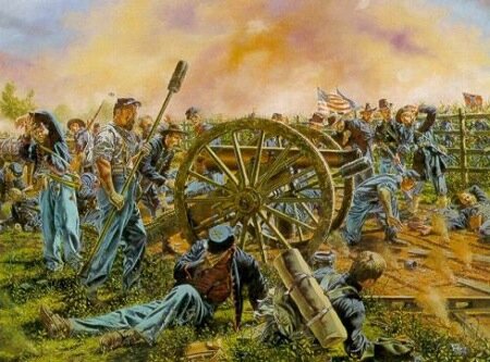 “Ormai quei reparti non erano più soldati in linea di battaglia, ma una moltitudine confusa di uomini che si batteva furiosamente tra il fumo denso delle moschetterie nel buio della sera che stava già avanzando“ – così descrisse la scena un colonnello nordista.
