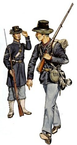 Quando si udivano le note di “Hell on the wabash” intonate dalla banda del Reggimento, arrivavano loro: i famosi “cappelli neri” della “Iron Brigade of the West”! Erano rudi uomini del Mid-West, provenienti dal lontano Wisconsin, dal Michigan e dall’Indiana.