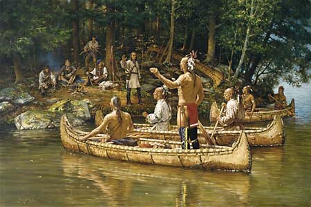 In quegli anni saliva alla ribalta il capo Pontiac, il quale si mise alla testa di una grande coalizione indiana per fronteggiare l’avanzata britannica ma, dopo la sconfitta e la morte del capo, sarebbe iniziato il declino irreversibile della tribù. Il primo contatto degli Ottawa con i francesi si ebbe nell’anno 1615 quando, presso la foce del fiume Francois alcuni guerrieri incontrarono Samuel Champlain e i suoi uomini, impegnati a raggiungere un insediamento degli Huron posto presso l’estremità meridionale del lago Huron. Anche se nelle terre degli Huron non mancavano i castori, in quelle più occidentali le risorse erano però immense e gli Ottawa avevano la possibilità di commerciare con le sconosciute tribù del nord e dell’ovest. Il proficuo commercio si intensificò intorno al 1620, quando nelle postazioni giungevano anche le pellicce dei Chippewa di Sault Marie e quelle dei gruppi Cree stanziati più a nord, lungo i fiumi che fluivano nella baia di Hudson. Spingendosi sempre più profondamente a ovest, gli Ottawa e gli Huron raggiungevano le terre dei Winnebago della Green Bay (Wisconsin), proprio nel momento in cui i Chippewa stavano cercando di occupare le terre di caccia di questa popolazioni Siouan. Fu allora che i Winnebago, inferociti dagli attacchi di nemici armati di archibugi francesi portati dagli Ottawa, rifiutarono di commerciare con la tribù e non le permisero di raggiungere i loro villaggi. Gli Ottawa cercarono di trattare, ma fu tutto vano perché i Winnebago massacrarono i loro ambasciatori e, inferociti, si disse che giunsero addirittura a mangiarli. Fu allora che Ottawa e Huron si prepararono ad una nuova guerra ma, nel 1634, grazie all’intervento del Jean Nicolet, si giunse ad una temporanea pace fra le tribù, ciò avrebbe permesso ai francesi di aprire il lago Michigan ai loro interessi commerciali. Nel frattempo gli Irochesi si spingevano a nord per attaccare gli Algonkin e i Montagnais, due popolazioni che i francesi, nel 1610, avevano guidato sul fiume San Lorenzo. Iniziava allora la “Guerra del Castoro” (1630-1700), che avrebbe portato a numerose lotte intertribali e a scontri violentissimi per il controllo delle vie commerciali. Quando, nel 1632, Quebec ritornava nelle mani francesi, gli Irochesi erano già riusciti a bloccare l’itinerario commerciale che passava attraverso la valle dell’Ottawa per raggiungere i Grandi Laghi. Per ristabilire un certo equilibrio i francesi dovettero rifornire di armi da fuoco le tribù alleate.