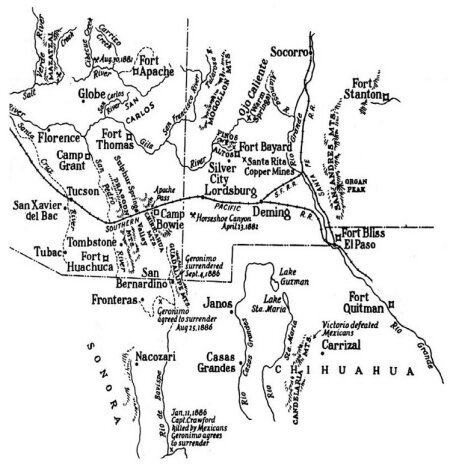 La notte del 18 maggio 1885, un grande gruppo di Apache Chiricahua, guidati dai capi Chihuahua, Naiche, Geronimo, Nana e Mangus lasciarono la riserva di San Carlos diretti verso il Messico.