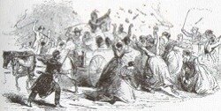 In quel momento, una corda si spezzò, e il corpo di un indiano cadde pesantemente a terra. Anche se aveva già il collo rotto, fu di nuovo impiccato con gli altri.