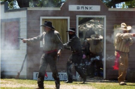 L’assalto alla banca fu condotto da ben quattordici ex guerriglieri che all’uscita della banca si trovarono di fronte il sindaco Shaw che, piantato in mezzo alla strada con un fucile e con una temerarietà che sfiorava la follia, ingaggiò battaglia da solo contro il gruppo. Quando il suo cadavere venne esaminato furono trovate sette pallottole.