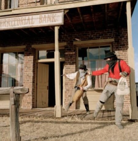 Il primo caso è quello di una rapina a Belle Fourche nel 1897 (North Dakota), in cui i banditi erano capitanati dal noto Harry Alonzo Longabaugh (Sundance Kid). Con lui c’erano i fratelli Logan e altri due ceffi di galera. In questo caso i banditi scapparono dopo la rapina in banca e ci fu la reazione del solo cassiere che, dopo il misfatto, seguì i banditi in strada armato di revolver che però si inceppò al primo colpo. E per fortuna sua quei fuorilegge, al contrario dei missouriani di Jesse James, avevano un buon senso dell’umorismo! Poco dopo i cittadini, organizzata una “posse”, circondarono i banditi in un ranch e li catturarono.